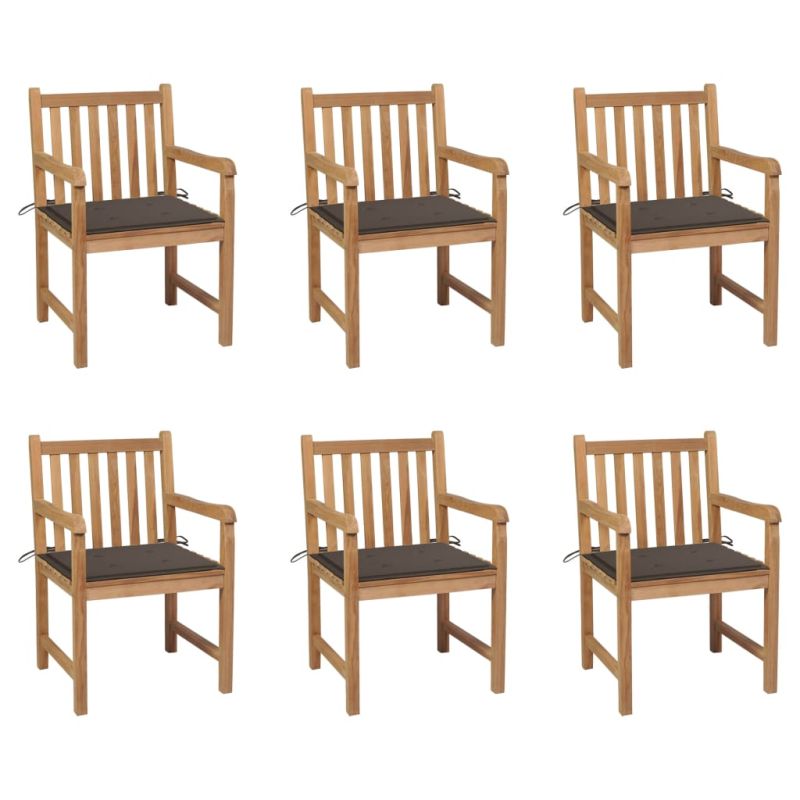 Градински столове 6 бр с възглавници таупе тиково дърво масив
