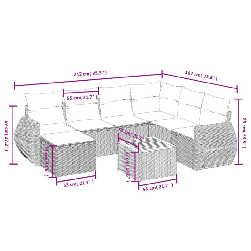 Този градински диван е идеалното допълнение към вашия заден двор, тераса или вътрешен двор, осигурявайки удобно и привлекателно пространство за разговори със семейството и приятелите или просто за почивка и забавление на открито. Издръжлив материал: PE ратан, известен също като полиратан, е здрав синтетичен материал с малко необходима поддръжка, който прилича на естествен ратан. Той е лек, лесен за почистване и често се използва за външни мебели поради своята издръжливост и устойчивост на атмосферни влияния.Стабилен и лесен за почистване плот: Тази градинска маса има плот от акациево дърво, който е здрав, издръжлив и лесен за почистване с влажна кърпа.Калъф, който може да се сваля и може да се пере: Тези възглавници за седалки имат подвижни калъфи за лесно пране и поддръжка.Здрава и стабилна рамка: Стоманената рамка с прахово покритие гарантира, че градинската мебел е здрава и стабилна за ежедневна употреба на открито.Модулен дизайн: Този комплект външни мебели има модулен дизайн, което го прави напълно гъвкав и лесен за преместване, така че можете да създадете персонализирана подредба на външни мебели. Добре е да се знае:За да сте сигурни, че вашите външни мебели ще останат красиви, ви препоръчваме да ги защитите с водоустойчиво покривало.