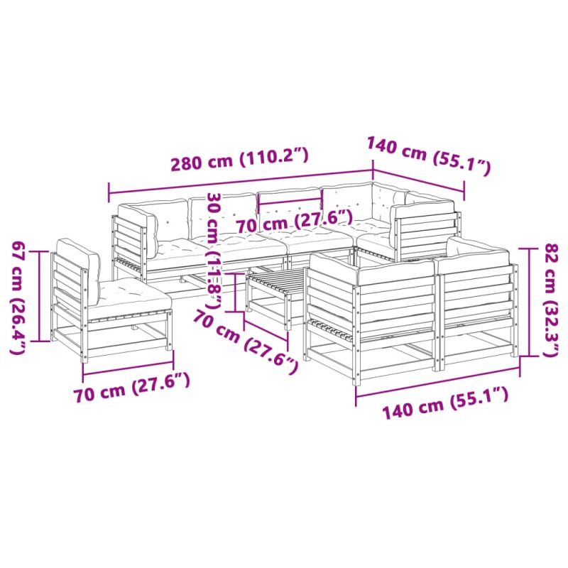 Градински комплект с възглавници, 9 части, дугласка ела масив