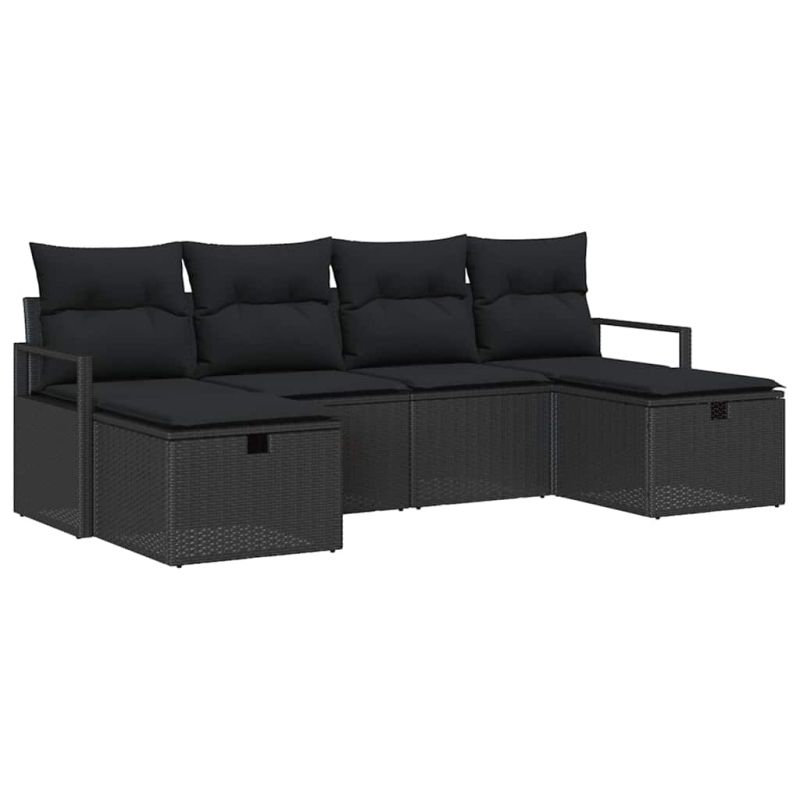 Комплект дивани с възглавница 6 pcs Черно полиратан