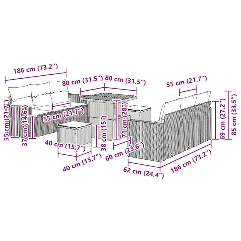 Този модулен комплект градински дивани добавя шик и многофункционалност към всяко открито пространство, независимо дали е малка тераса или голяма градина. С модерния си и изчистен дизайн, комплектът изглежда стилно и ненатрапчиво. Идеален е за всякакви случаи – от забавления с приятели до спокойни моменти на уединение. Висококачествени материали: Изработен от полиратан и масивно акациево дърво, този комплект е проектиран да издържи на външното ползване. Полиратанът е стилен и UV-устойчив, за да предотврати избледняване. С конструкция от здрава стомана, обещава да ви служи дълго, без да се притеснявате за времето. Иновативни компоненти: Всеки елемент е проектиран с удобство – седалките имат свалящи се калъфи. Гърбът е от полиратан за комфорт, а масивната маса предлага много място. Краката осигуряват стабилност, идеално за всякакви условия. Функционални характеристики: Регулируемата маса преминава от кафе-таблица до трапезна, подходяща за всякакви поводи. Водоустойчивата чанта осигурява удобно съхранение, а лекият му дизайн прави пренастройването лесно. Универсална полезност: Проектиран за градини или тераси, комплектът е идеален за срещи с приятели или спокойно четене на книга. Дизайнът му лесно влизат в различни интериори, придавайки стил на любимото ви място на открито. Указания за грижа: За по-дълъг живот, използвайте защитно покритие, когато не е в употреба. Тази стъпка го предпазва от дъжд и слънце, запазвайки свежия му вид. Редовната поддръжка осигурява безпроблемна атмосфера за всяко събитие.