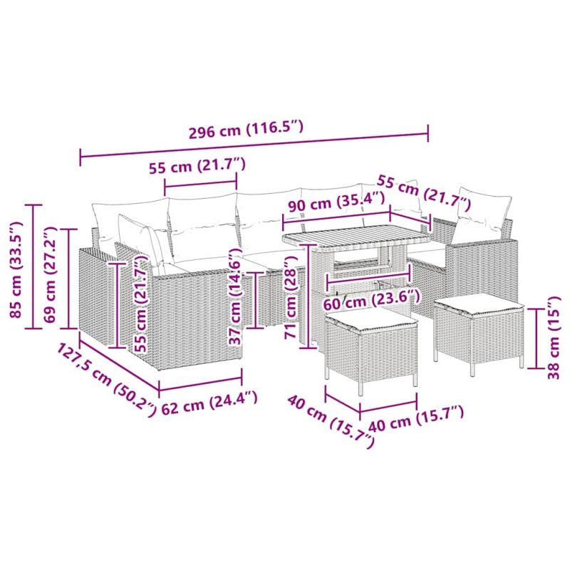 Модулният комплект градински дивани предлага уникално съчетание на практичност и стил. Можете да го конфигурирате по различни начини, идеални за всяка градина или тераса. С минималистичното си оформление, той придава елегантност на всяка външна среда. Качествени материали: Направен е от полиратан и масивна акация, които осигуряват устойчивост на време и здравина. Тази комбинация изглежда страхотно и е здрава. Комфорт върху всичко: Включва външни възглавници от устойчива на времето материя. Калъфките се свалят и перат, улеснявайки поддръжката. С просторното си оформление, комплектът е идеален за прекарване на време с близките. Стил с много функции: Позволява лесно пренареждане на модулите, за да се адаптира на всяка ситуация. Лесен е за преместване, без да губи стабилност. Перфектен за всякакви случаи: Идеален за градини и тераси, комплектът подхожда както за тихи моменти, така и за летни партита. Простият, модерен стил лесно се вписва в всеки градински дизайн. Лесна поддръжка: Използвайте покривало, когато не е в употреба, за да защитите мебелите от UV лъчи и климатични промени, осигурявайки дълготрайност.