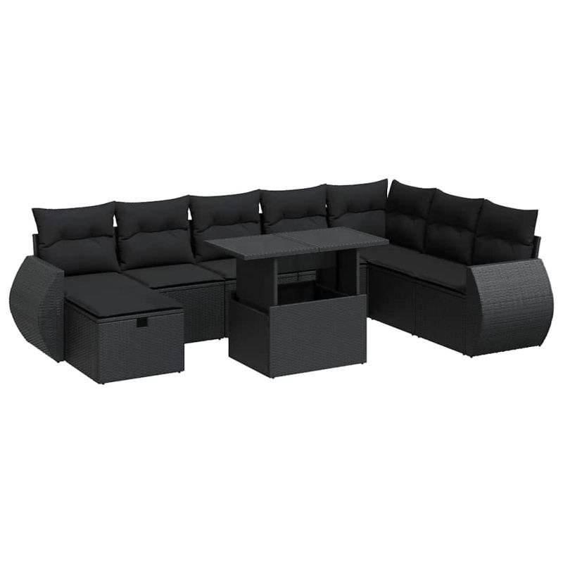 Градински комплект диван с възглавници 9 части черен полиратан