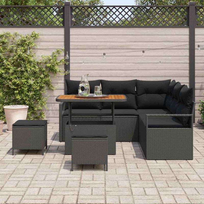 Градински Софа Комплект с възглавница с възглавница 8 pcs Черно