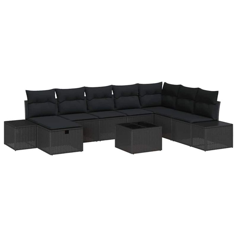 Градински Софа Комплект с възглавница 9 pcs Черно Полиратан