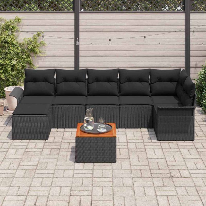Градински Софа Комплект със съхранение 8 pcs Черно полиратан