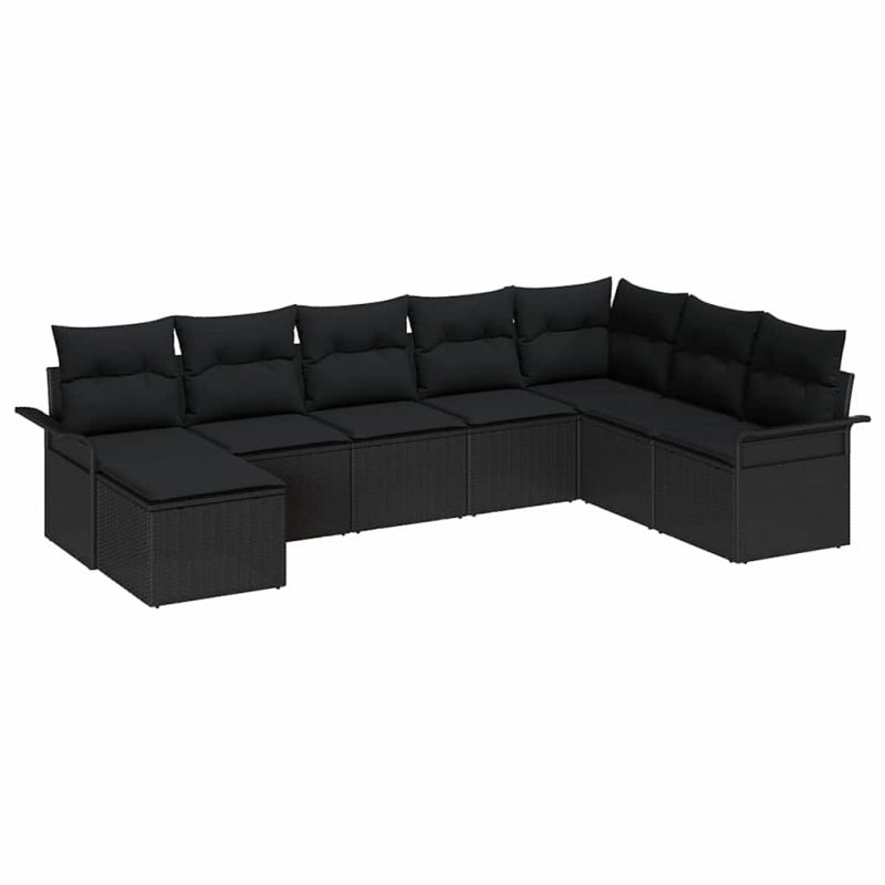 Градински Софа Комплект с възглавница 8 pcs Черно Полиратан