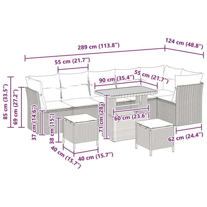 Градински Софа Комплект 9 pcs Черно 90 x 55 x 71 cm