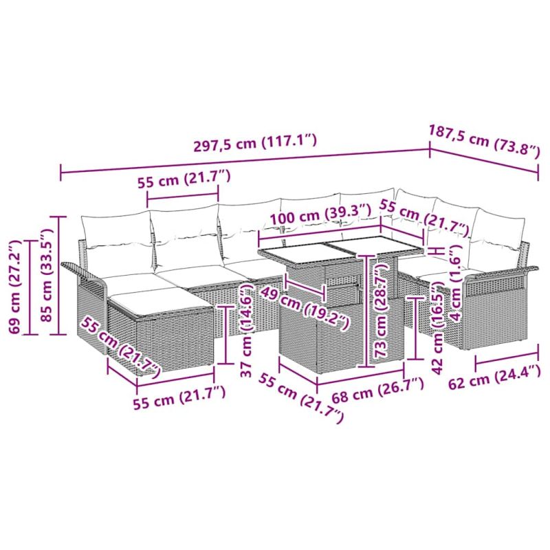 Градински Софа Комплект с възглавница 9 pcs Черно