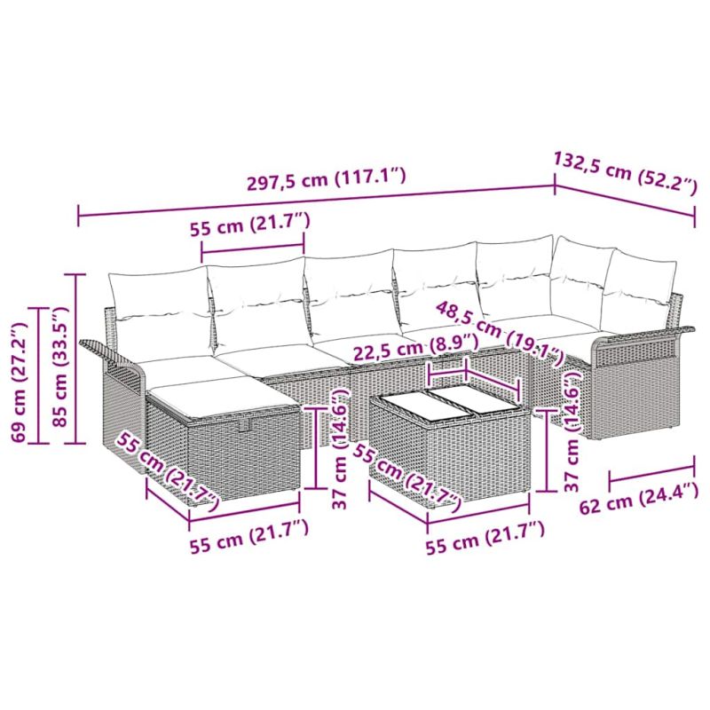 Градински Софа Комплект с възглавница 8 pcs Черно полиратан