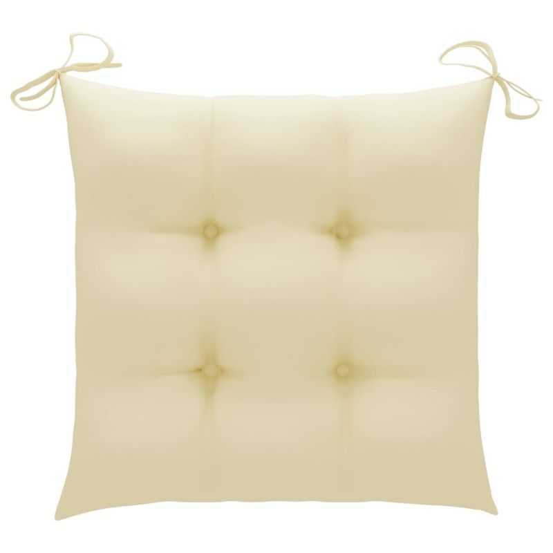 Тези дървени градински столове са проектирани да се превърнат във фокусна точка на вашата градина или вътрешен двор. Трапезните столове са изработени от масивно акациево дърво и висококачествена неръждаема стомана, което ги прави много издръжливи, устойчиви на ръжда, здрави и лесни за почистване с влажна кърпа. Включената възглавница е повече от практично допълнение; тя има и декоративна функция. Настанете се за прекрасна вечеря на открито или просто се отпуснете и се насладете на времето с този класически комплект градински столове. Забележка: За да удължите живота на вашите градински мебели, ви препоръчваме да ги защитите с водоустойчиво покритие.