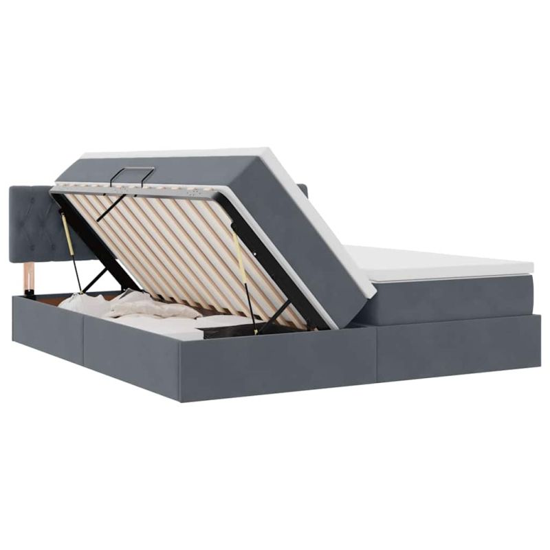 Начало Мебели Комплекти мебели Легло С LED лентисти светлини Тъмен сив 200 x 200 cm Кадифе