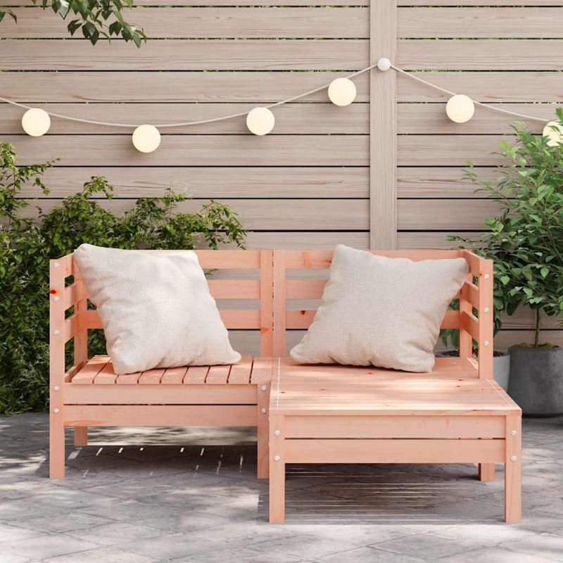 Това 2-местно дървено градинско кресло с табуретка ще бъде страхотно допълнение към вашата градина, тераса или вътрешен двор за разговори със семейството и приятели или просто за наслаждаване на времето. Масивно дърво дугласка ела: Масивната дугласка дървесина е изключително издръжлива дървесина, която е подходяща за използване на открито. Дугласката дървесина е достатъчно здрава, за да функционира с минимални грижи, дори под въздействието на атмосферните влияния.Удобно седене: Облегалката добавя повече комфорт при седене на градинския стол.Разнообразна употреба: Тази външна табуретка за крака може да се използва не само за сядане или отпускане на краката ви, но може да се използва и като масичка за кафе, за да държите вашите напитки, храна и други декорации.Дизайн с ламели: Конструкцията с ламели на палетния диван ефективно предотвратява събирането на вода, като гарантира, че седалката ще остане суха и няма да изгние.Модулен дизайн: Дървеният градински диван има модулен дизайн, което го прави напълно гъвкав и лесен за преместване, за да пасне на всяка обстановка. Можете да комбинирате различни модулни елементи, налични в падащото меню, за да създадете собствени конфигурации на градинска зона за отдих! Добре е да се знае:За да сте сигурни, че вашите външни мебели ще останат красиви, ви препоръчваме да ги защитите с водоустойчиво покривало. Максимално 110 кг на седалка.