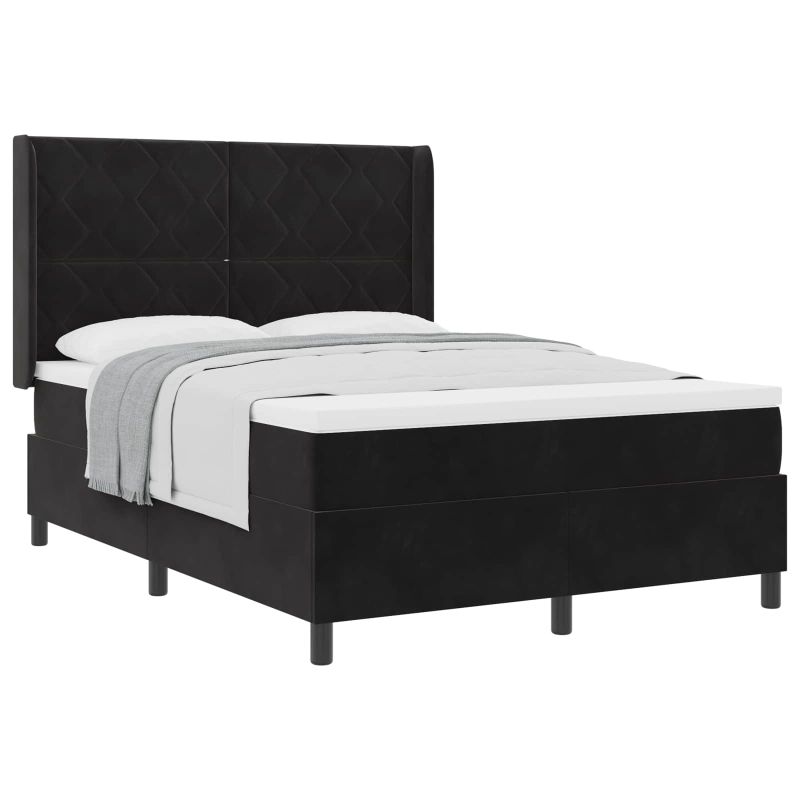 Легло с пружинирана основа с матрак Черно 140 x 200 cm Кадифе