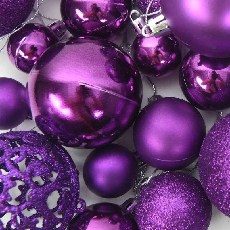 Комплект коледни топки от 111 части, лилави, полистирен