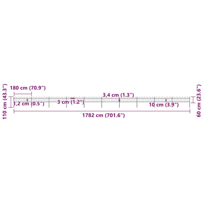 Градинска ограда с обръч връх, стомана, 1781,5x60 см, черна