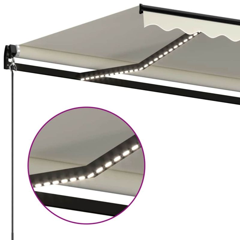 Ръчно прибиращ се сенник с LED, 450x300 см, кремав