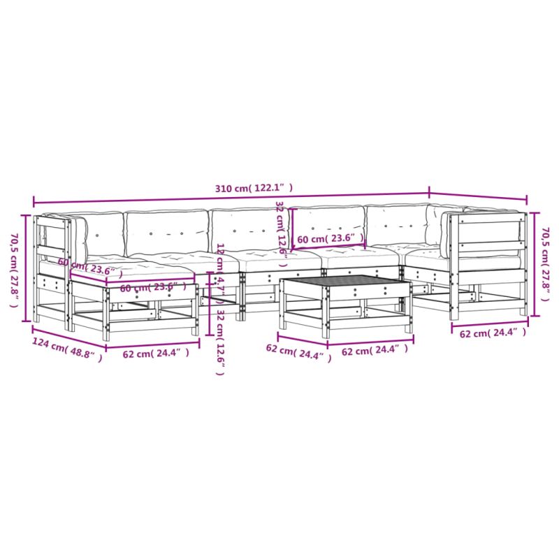 Градински комплект с възглавници, 8 части, дугласко дърво масив