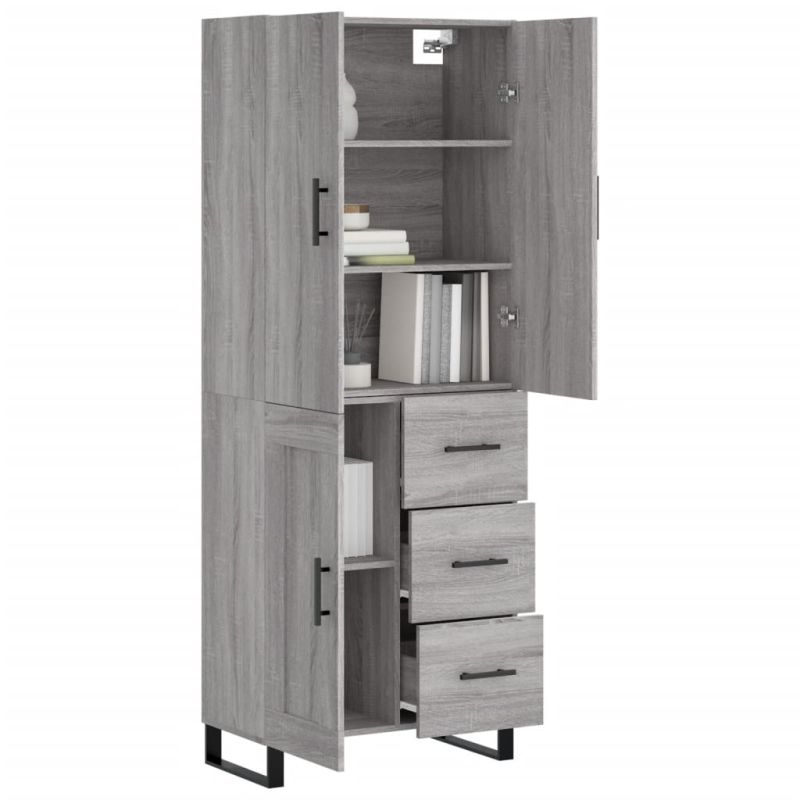 Висок шкаф, сив сонома, 69,5x34x180 см, инженерно дърво