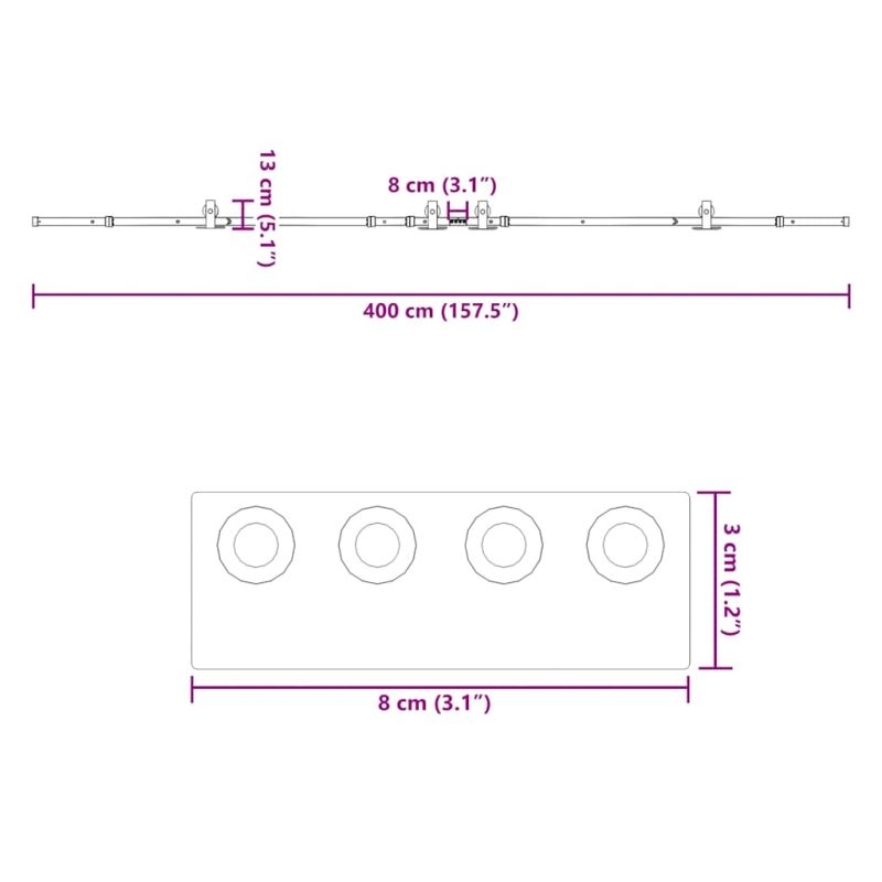Комплект механизъм за плъзгаща врата, 400 см, стомана, черен