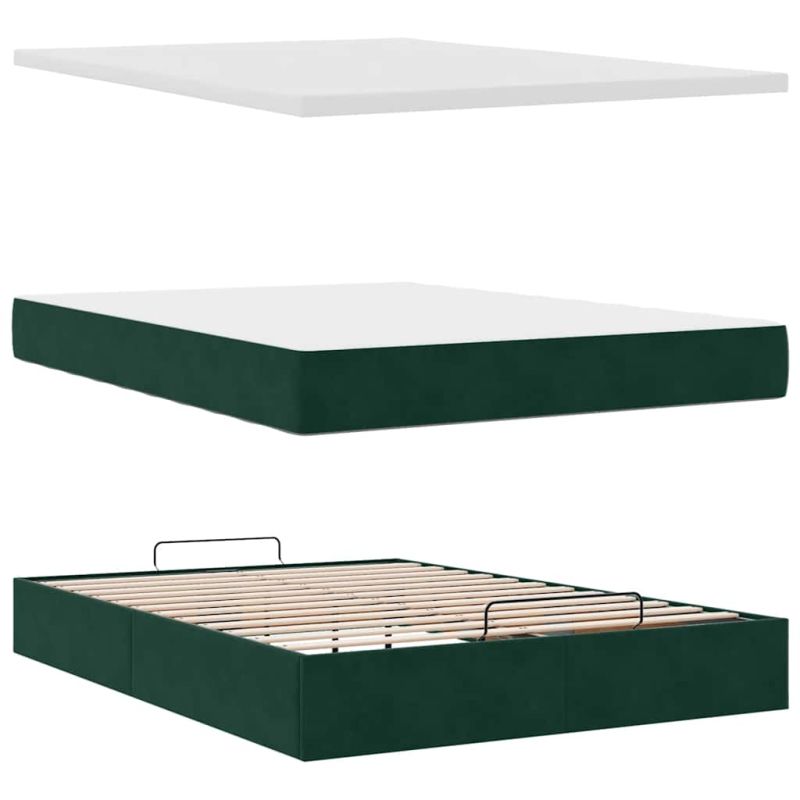 Начало Мебели Легла и аксесоари Легла и рамки за легла Османско легло с матрак Тъмнозелено 140x200cm кадифе