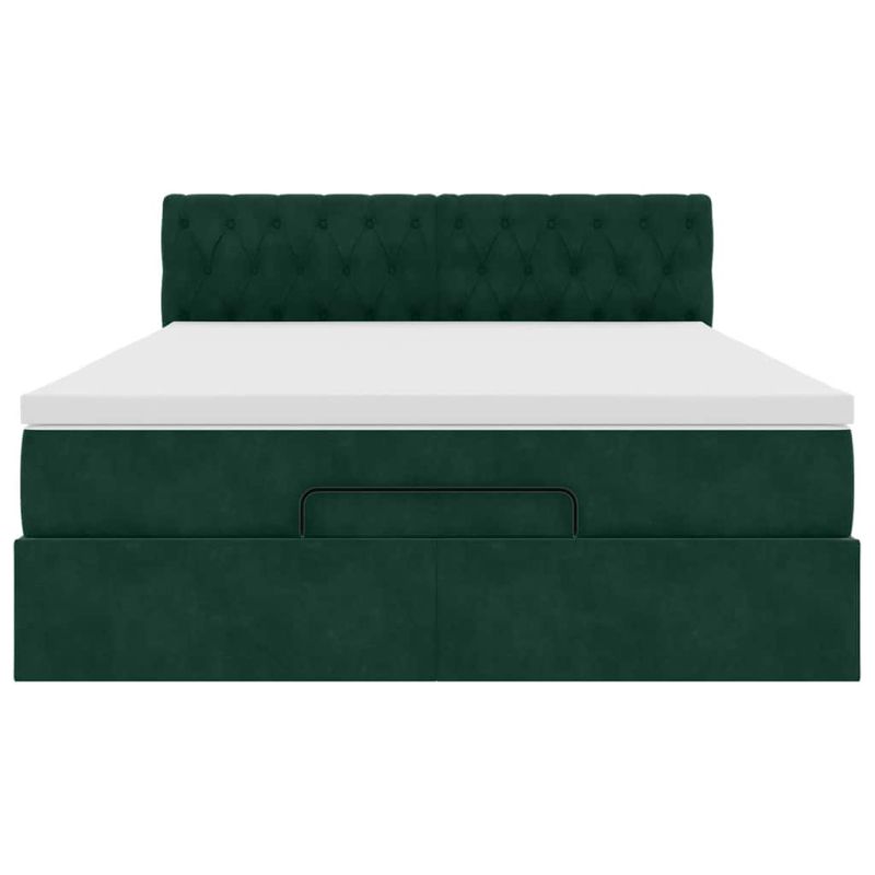 Османско легло с матрак Тъмнозелено 140x200cm кадифе