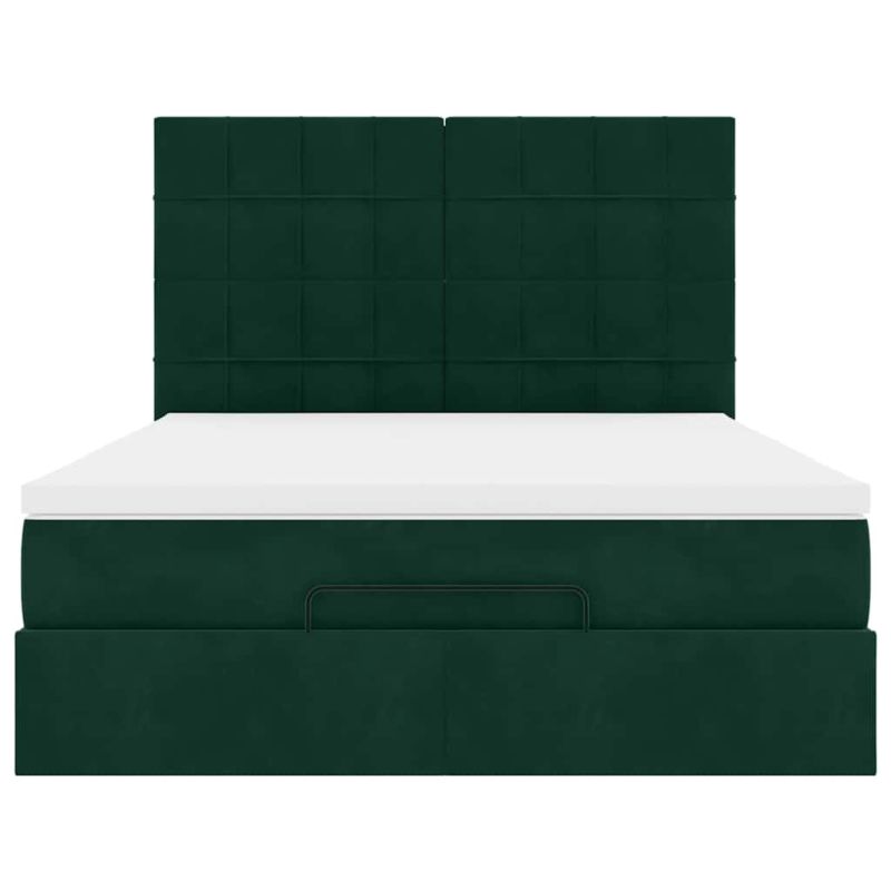 Начало Мебели Легла и аксесоари Легла и рамки за легла Османско легло с матраци Тъмнозелено 140x200cm кадифе