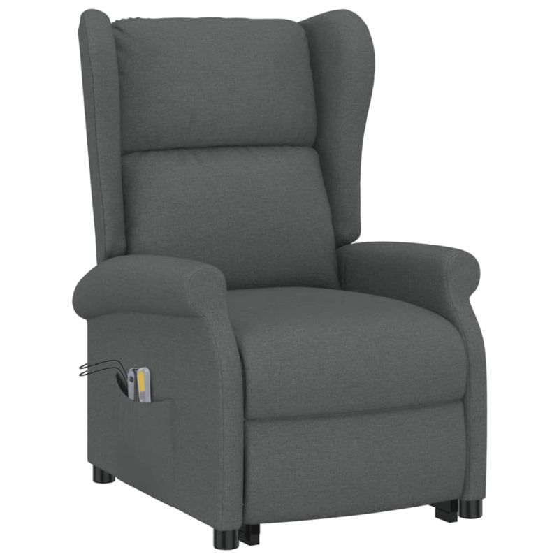 Отпуснете се и се потопете в този изключително удобен масажен стол с изправено положение! Функция за ръчно накланяне: Накланящият се стол е специално проектиран с 3 позиции за накланяне, така че можете да регулирате облегалката и поставката за крака ръчно според вашия комфорт.Функция за повдигане с електрическо захранване: Този накланящ се стол за възрастни хора е оборудван с електрически мотор за функцията за повдигане. Благодарение на функцията, която повдига целия стол нагоре, можете лесно да стоите, без да натоварвате гърба и коленете си, с ръчния контролер с 2 бутона.Функция за вибрация: Представените 6 масажни точки ви позволяват да се насладите на по-целенасочен масаж. Освен това, включеният ръчен контролер ви позволява да избирате различни програми за масаж. Функцията за масаж се захранва от USB конектора, но сертифицираният 5V USB източник на захранване не е включен.Комфортно изживяване при седене: Дебело подплатената седалка, облегалката и широките подлакътници, покрити с плат, осигуряват уютно и топло усещане, карайки ви да се чувствате обгърнати, докато седите. Платът се отличава с семпъл и изчистен вид, дишащ е и издръжлив.Солидна и стабилна рамка: Рамката, изработена от дърво и метал, осигурява здрава структура и стабилност. Този фотьойл с функция за отпускане е удобен и издръжлив. Максимално 110 кг на седалка. Съобразете се с риска от открит огън и други източници на силна топлина в близост до продукта.