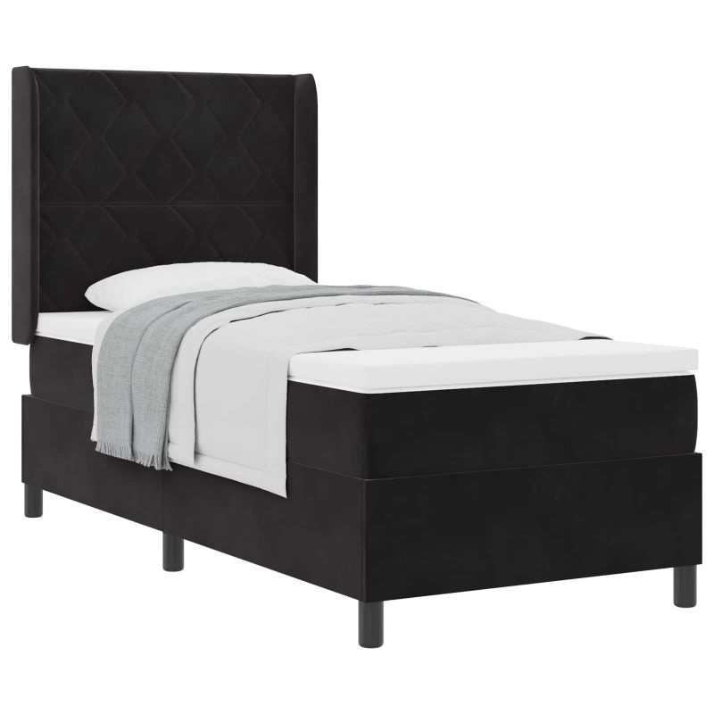 Легло с пружинирана основа с матрак Черно 90 x 190 cm Кадифе