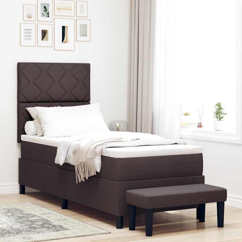 Легло с пружинирана основа Тъмен кафяв 80 x 200 cm текстил