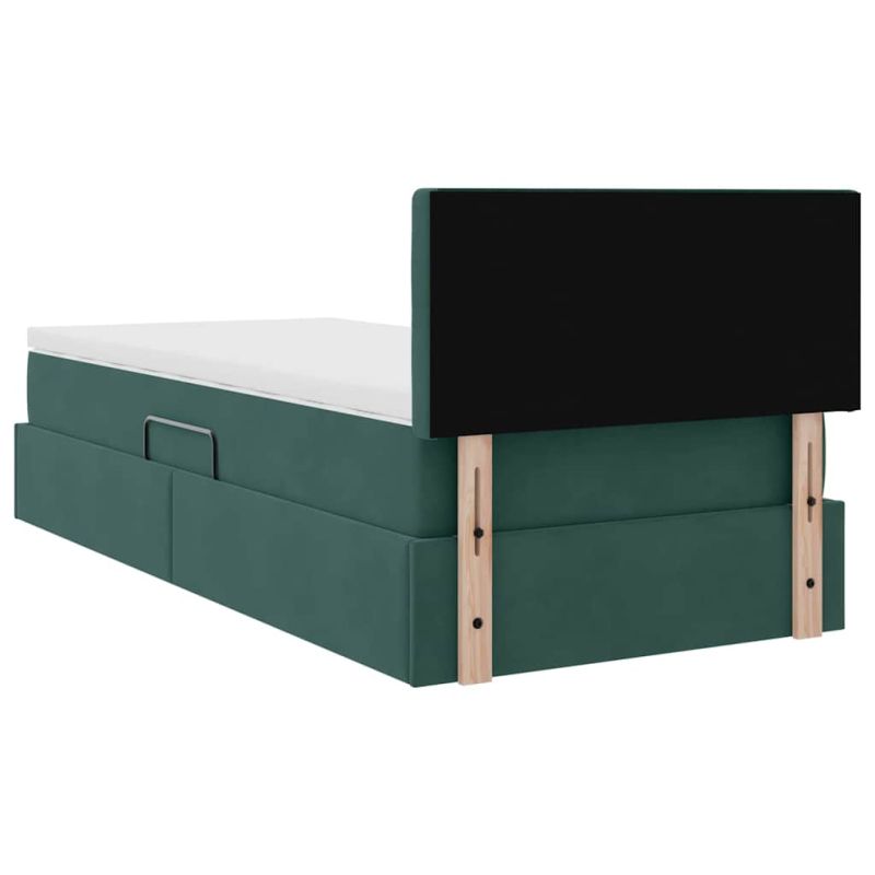 Легло с място за съхранение и LED с LED Тъмен зелен 90 x 190 cm