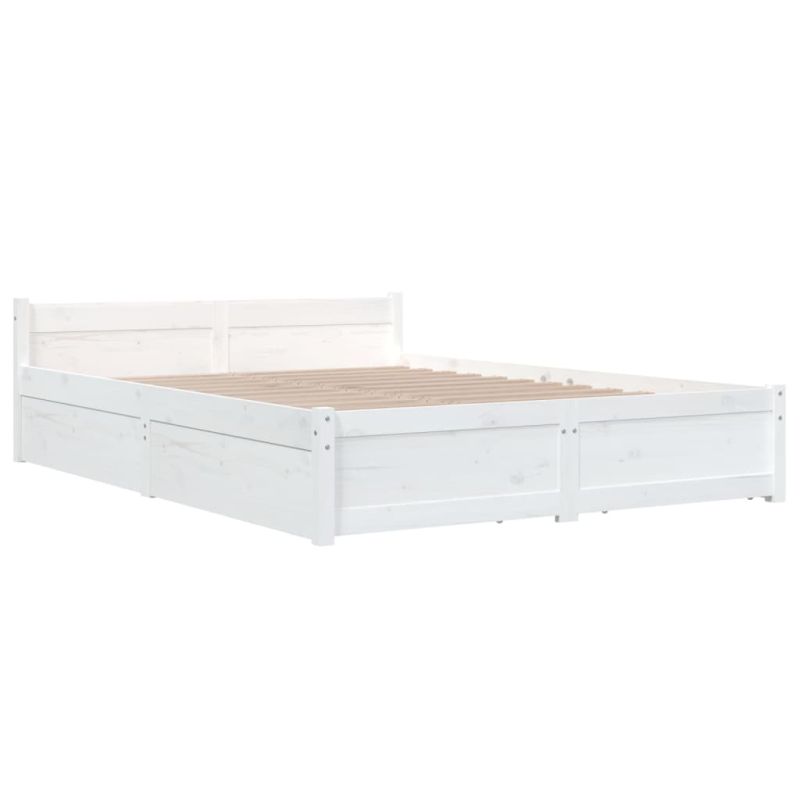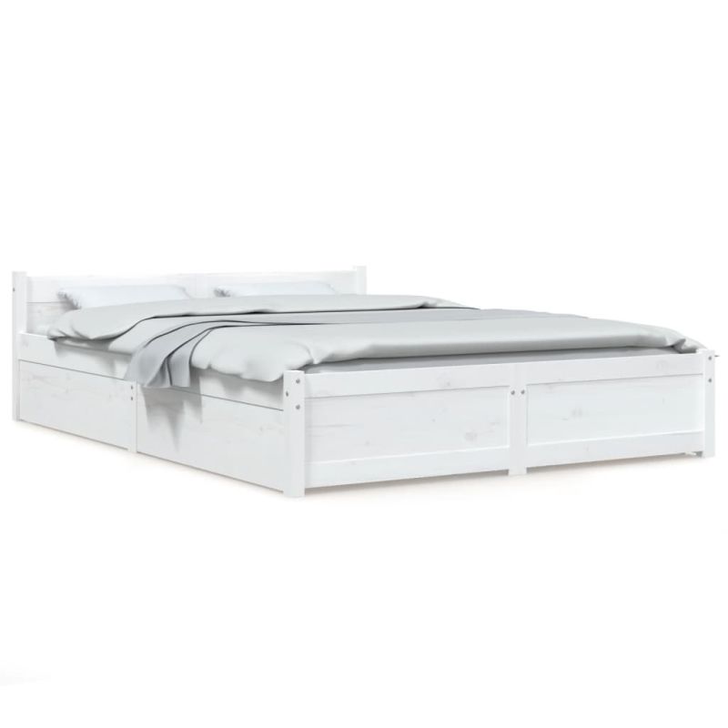 Рамка за легло с чекмеджета, бяла, 140x190 см