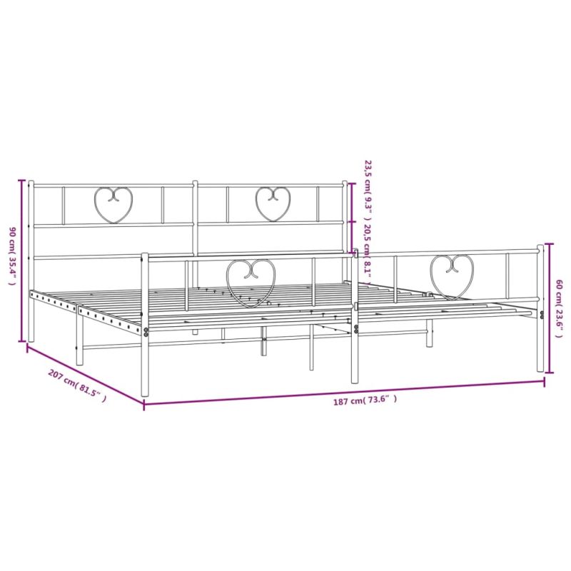 Метална рамка за легло, без матрак, с табли, черна, 180x200 см