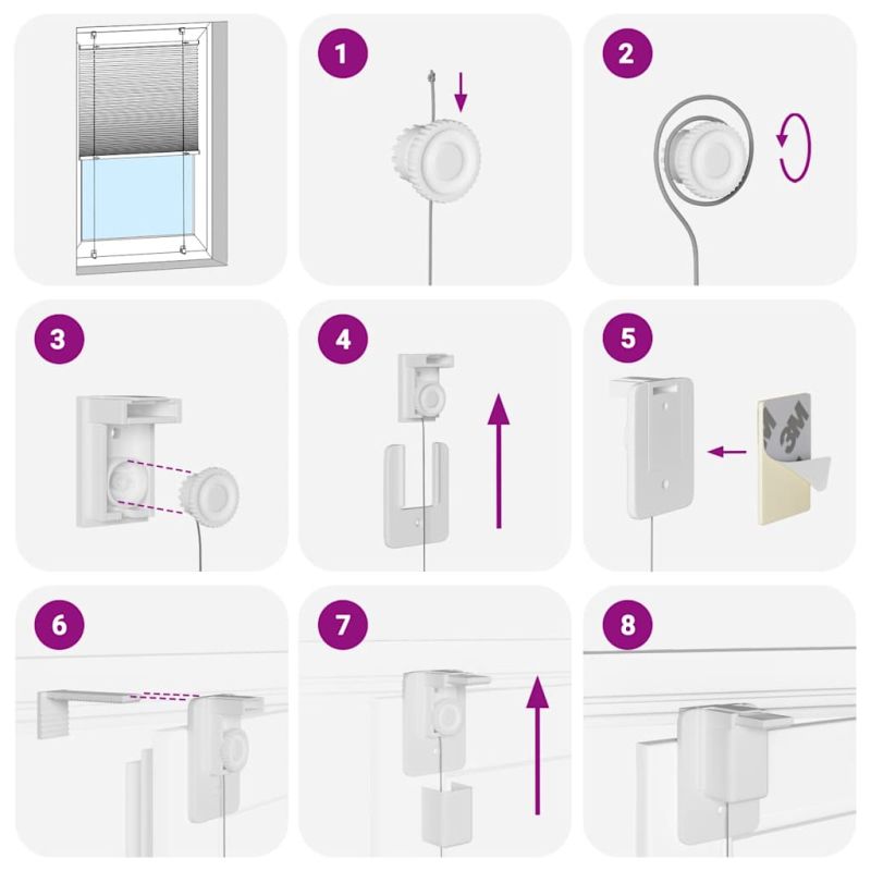 Подобрете стила и функционалността на стаята си с тази плисирана щора, която осигурява неприкосновеност на личния живот и елегантност. Издръжливи и с ниска поддръжка: Изработена от 100% полиестер, плисираната щора е изработена така, че да издържи дълго и да е устойчива на износване.Поверителност и слънцезащита: щората не е прозрачна, но и не е напълно затъмняваща, като осигурява оптимална защита на личния живот и отблясъците с плисираната си материя. Можете да регулирате нивото на поверителност, като я движите нагоре или надолу.Два начина на сглобяване: В зависимост от нуждите си можете да закрепите плисираната щора към стената или прозореца с винтове или без пробиване с помощта на скоби за пристягане.Елегантен дизайн: Благодарение на елегантния си и модерен дизайн, тази плисирана щора допълва с лекота различни интериори на стаите. Можете да я използвате във всекидневната, спалнята, офиса и т.н. Внимание: Дръжте кабелите на място, недостъпно за малки деца. Връзките могат да се увият около врата на детето. Добре е да се знае:Преди да купите щори, започнете с измерване на стъклото на прозореца. Само един приятелски съвет: платът е малко по-тесен от общата ширина, включително скобите.За да сте сигурни, че новите ви щори осигуряват пълно покритие, просто добавете 0,6 см към ширината на прозоречното стъкло, когато изчислявате какво да поръчате. ВНИМАНИЕ!Малките деца могат да бъдат удушени от примки в дърпащи въжета, вериги, ленти и вътрешния кабел, който управлява този продукт. За да избегнете удушаване и оплитане, дръжте кабелите далеч от обсега на малки деца. Шнурите могат да се увият около врата на детето. Преместете леглата, креватчетата и мебелите далеч от въжетата за покриване на прозорци. Не завързвайте кабелите заедно. Уверете се, че кабелите не се усукват и образуват примка. ВНИМАНИЕ!Децата могат да се удушат, ако това предпазно устройство не е монтирано и регулирано. Прочетете внимателно инструкциите и инсталирайте съответно. GPSR