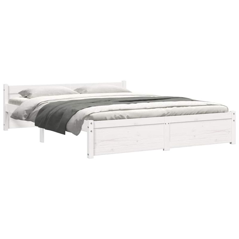 Рамка за легло, бяла, масивно дърво, 140x190 см