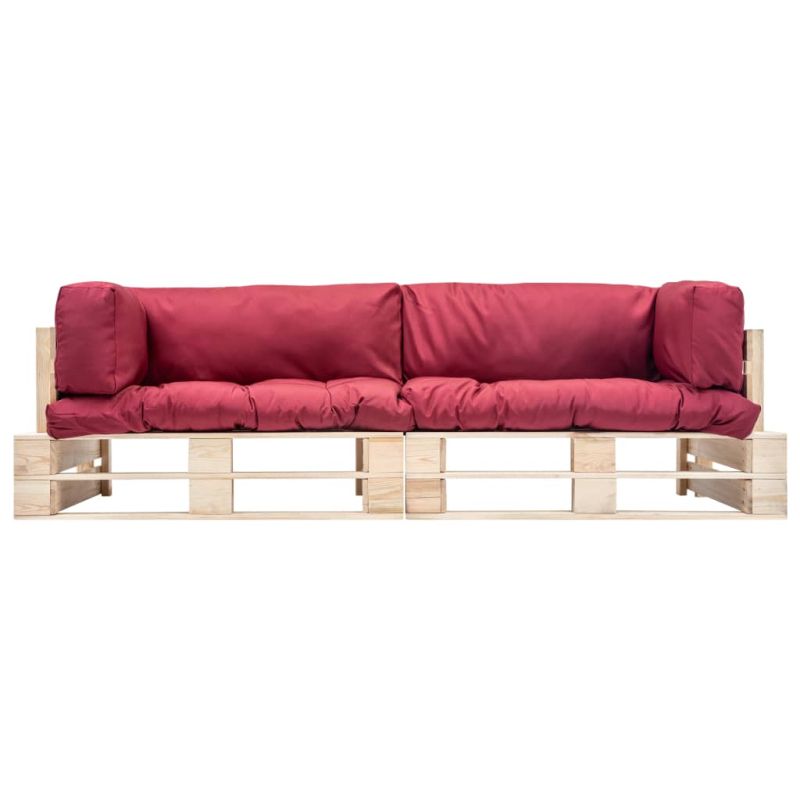 Градински диван от 2 части с червени възглавници бор