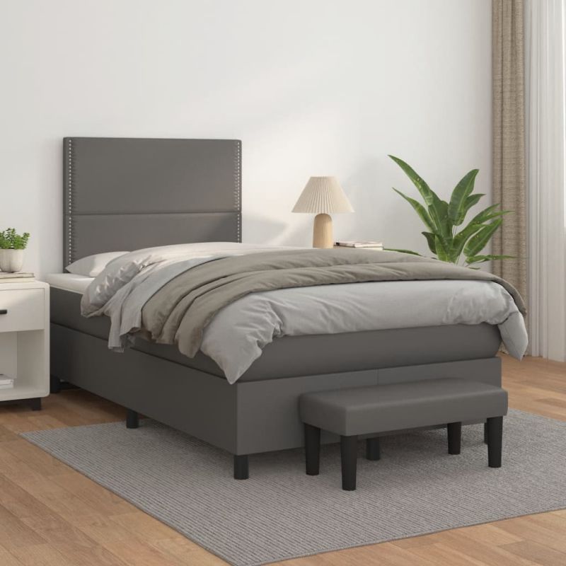 Боксспринг легло с матрак, сиво, 120x190 см изкуствена кожа