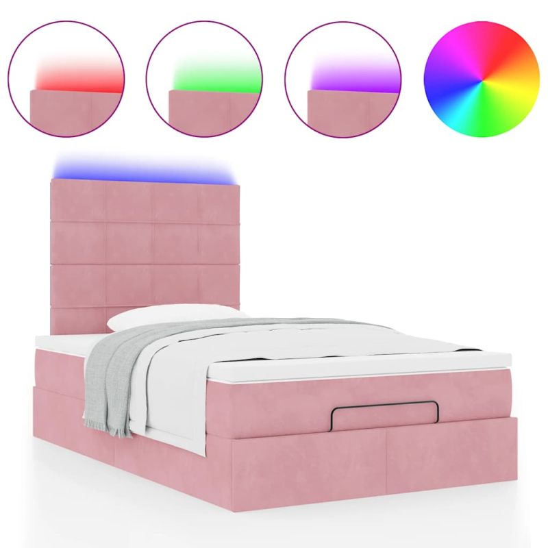 Начало Мебели Легла и аксесоари Легла и рамки за легла Османска легло с матраци и LED, розово, 120x200 см, кадифе