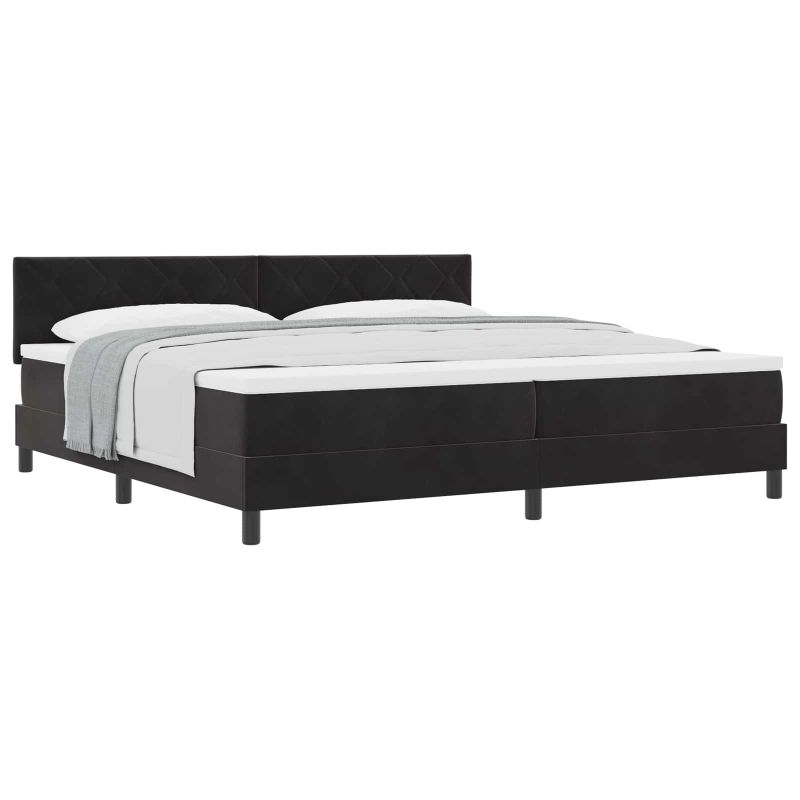 Легло с пружинирана основа с матрак Черно 200 x 200 cm Кадифе