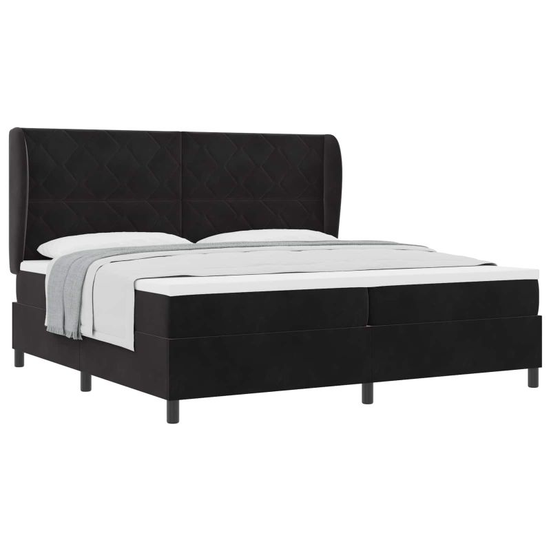 Легло с пружинирана основа Черно 200 x 200 cm Полиестер