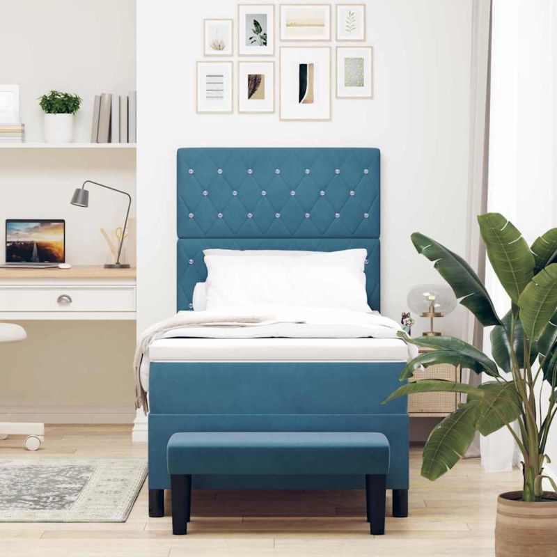 Начало Мебели Легла и аксесоари Легла и рамки за легла Легло с пружинирана основа Тъмносиньо 100 x 200 cm Кадифе