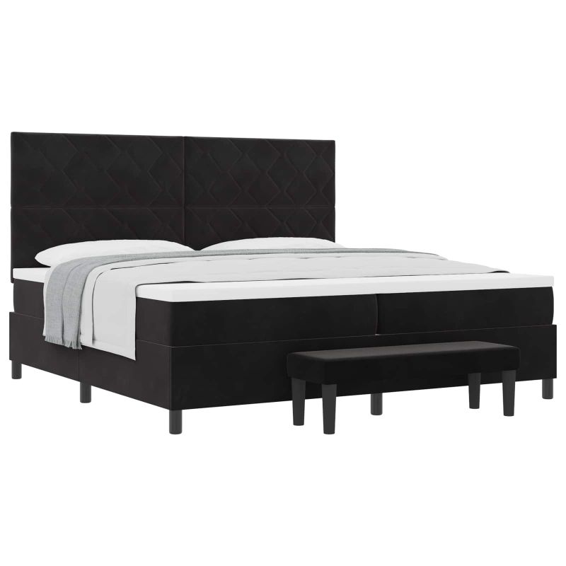 Легло с пружинирана основа с матрак Черно 200 x 200 cm Кадифе
