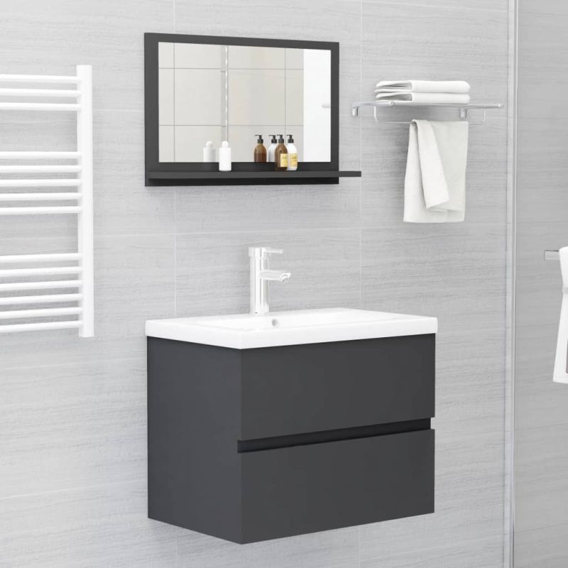 Огледало за баня, сиво, 60x10,5x37 см, ПДЧ