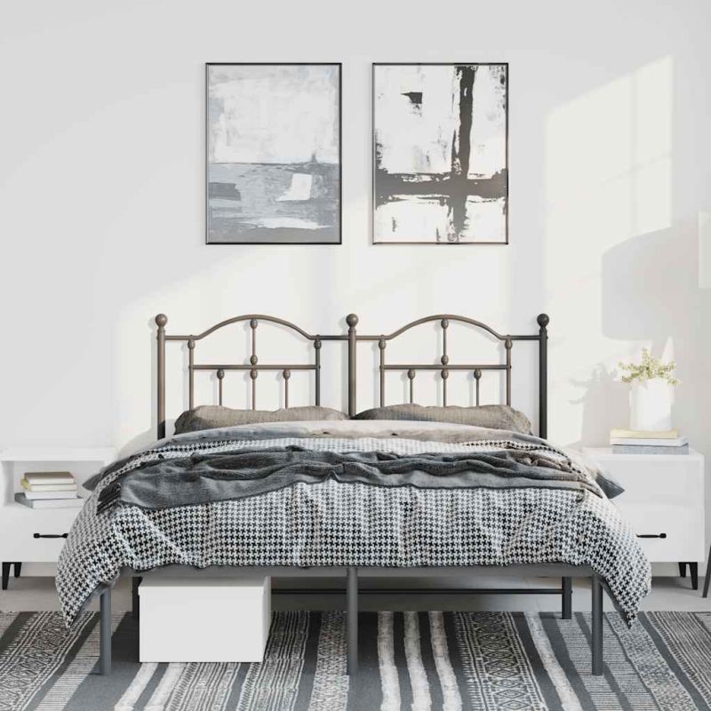 Метална рамка за легло с горна табла, черна, 135x190 см