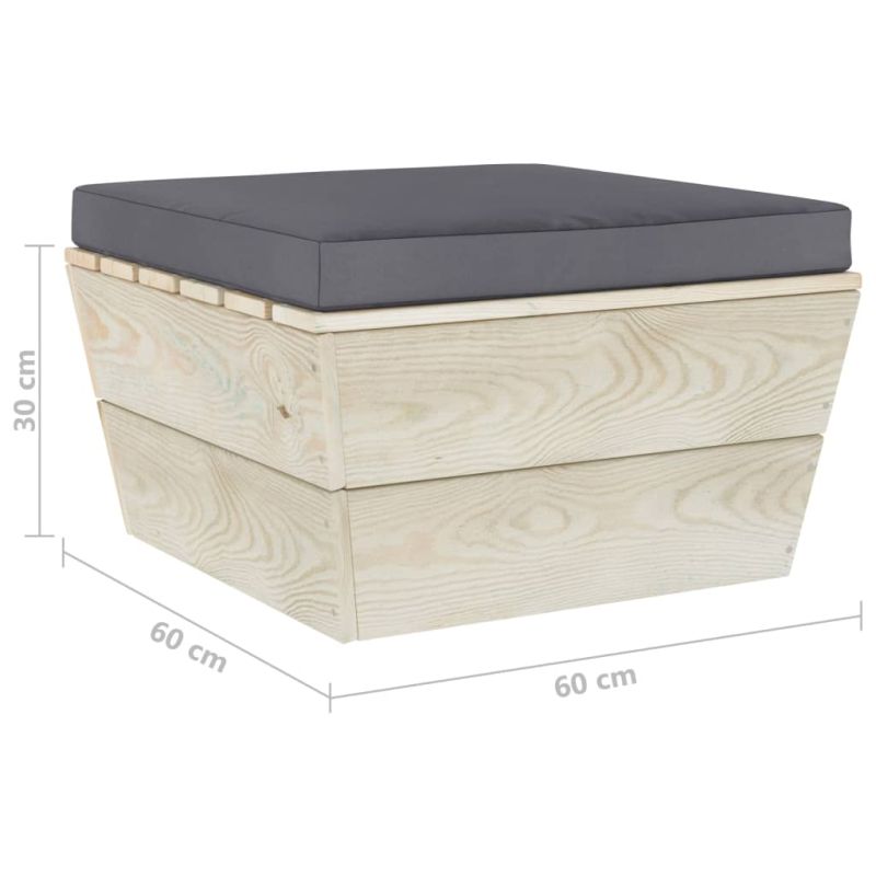 Този градински лаундж комплект от палети с възглавници от 3 части е отличен избор за релакс и наслада на времето, дрямка или разговори със семейството или приятелите ви. Дървеният лаундж комплект с неостаряващ дизайн от палети добавя нотка на рустик чар към вашия вътрешен двор, градина или хол. Градинският лаундж комплект е изработен от импрегнирана смърчова дървесина, което го прави издръжлив и стабилен. Този комплект с диван се отличава с масивна конструкция и изисква малко поддръжка. Благодарение на тапицерията от 100% полиестер и дебелата подплата възглавниците за палети са меки и осигуряват максимален комфорт. В допълнение, модулният дизайн позволява да поставите комплекта във всякакви аранжировки според вашия вкус. Моля, забележете: Дървото е естествен продукт и е възможно да има леки несъвършенства.