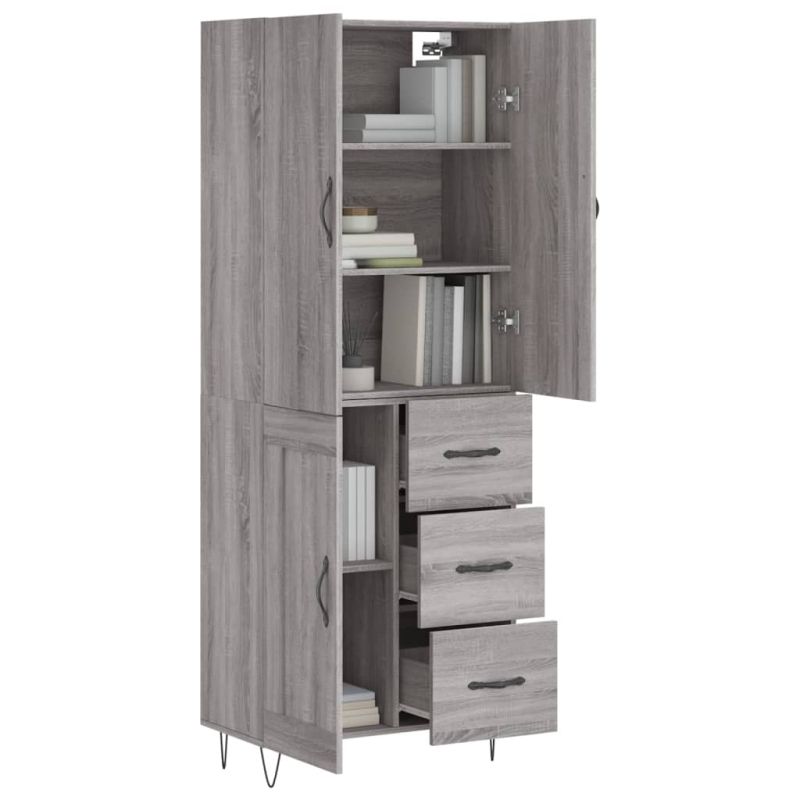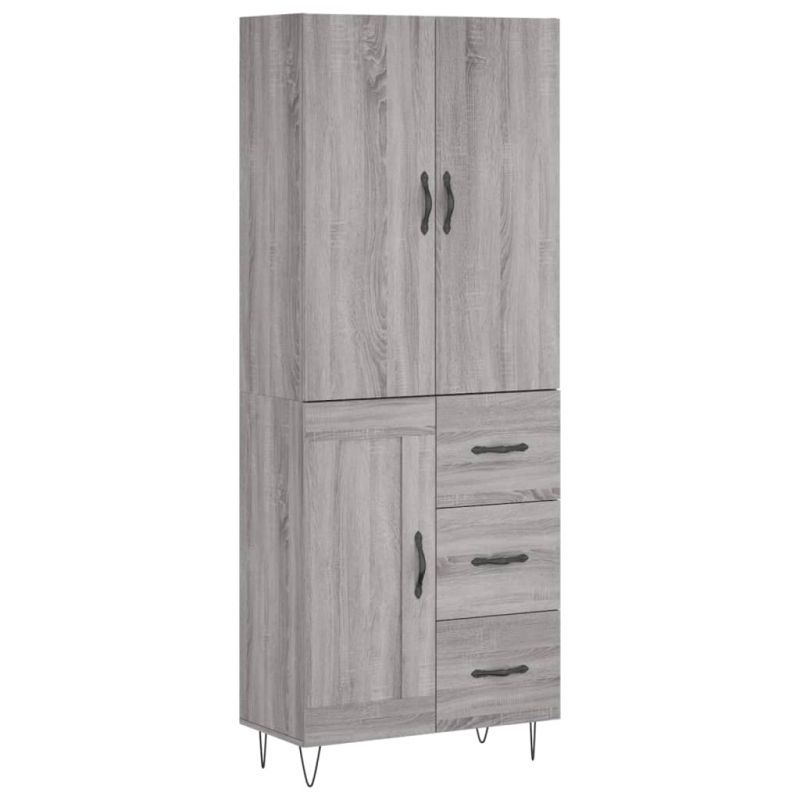 Висок шкаф, сив сонома, 69,5x34x180 см, инженерно дърво