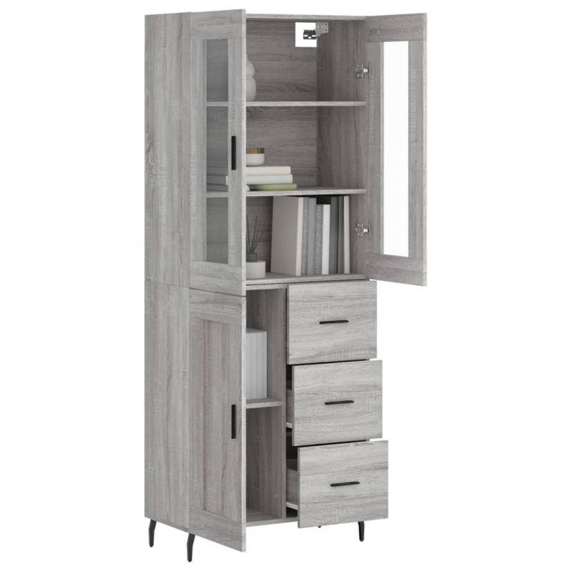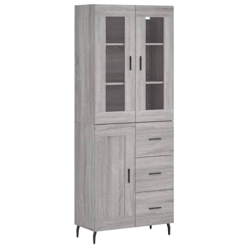 Висок шкаф, сив сонома, 69,5x34x180 см, инженерно дърво