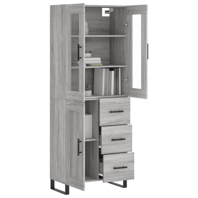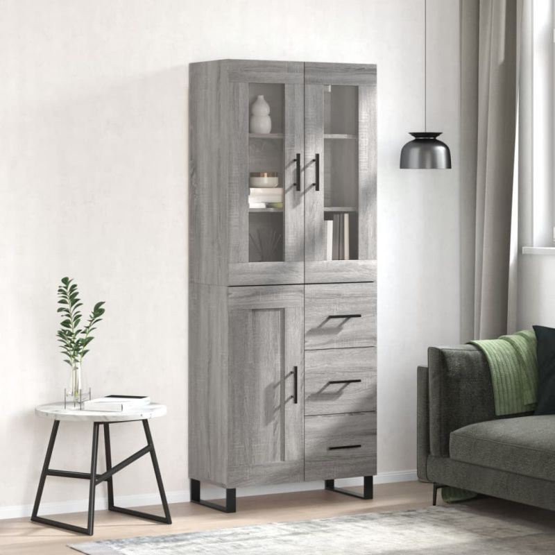 Висок шкаф, сив сонома, 69,5x34x180 см, инженерно дърво