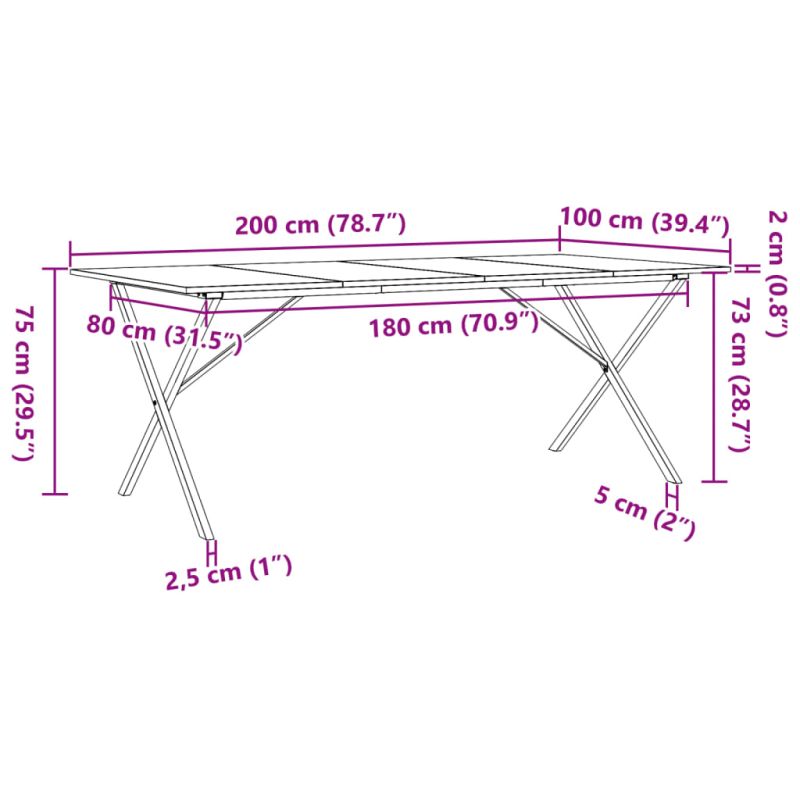 Трапезна маса X-образна рамка 200x100x75 см бор масив и стомана