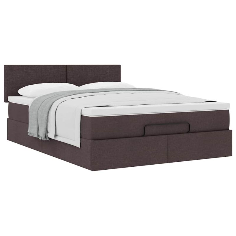 Османско легло с матрак Тъмно кафяво 140x190 cm Плат